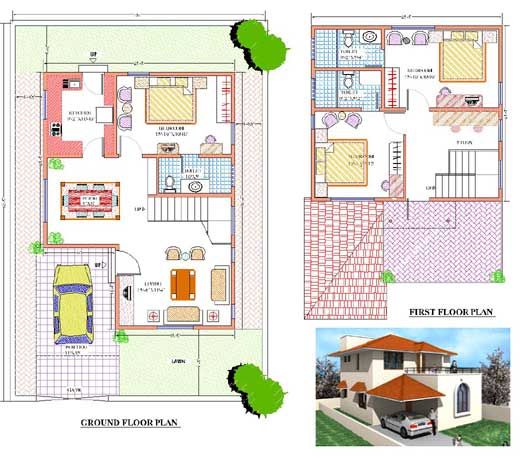 Duplex Plan Ground Floor And First Floor With Elevation Cad