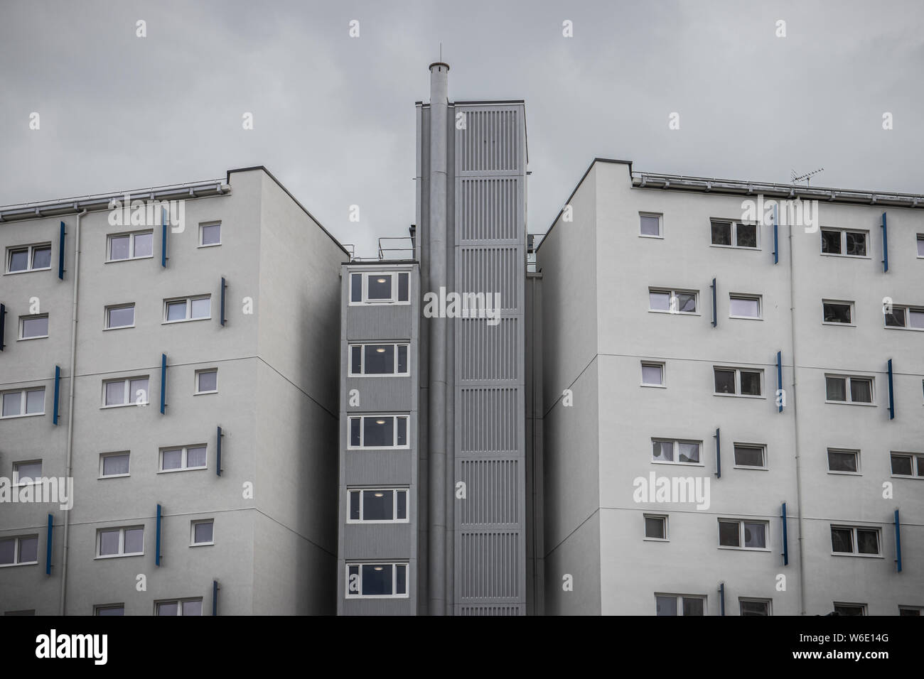 A Typical English Apartment Block Or High Rise Tower Block Of