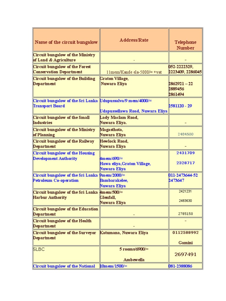 List Of Government Circuit Bungalow Nuwara Eliya Water And